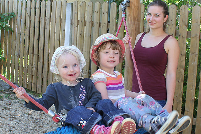 Auf zwei Etagen spielen und lernen die Kinder in altersgemischten Gruppen der Ein- bis Dreijährigen und Drei- bis Sechsjährige mit viel Raum zum Bewegen, Spielen, Bauen, Experimentieren, Gestalten, Erforschen und Ausruhen.
