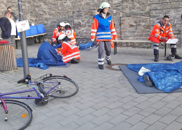 Die Mannschaften mussten in Begleitung eines ortskundigen Guides einen anspruchsvollen Parcours quer durch die Siegener Innenstadt mit 12 spannenden Aufgaben aus der Ersten Hilfe, dem Sanitätsdienst sowie aus dem Betreuungs- und Technischen Dienst unter den strengen Augen der Schiedsrichter und vieler neugieriger Passanten bewältigen. Ergänzt wurden die Stationen durch interessante Pausenstopps, wie beispielsweise Präsentation der Rettungshundestaffel. Und natürlich diente der Wettbewerb auch wieder der Begegnung und dem Austausch. Rotkreuzler aus ganz Deutschland hatten die Möglichkeit, sich kennenzulernen, wiederzutreffen, auszutauschen, gemeinsam zu feiern und nebenbei das schöne Siegerland kennen zu lernen.