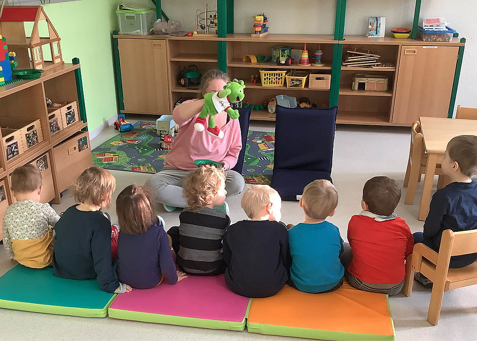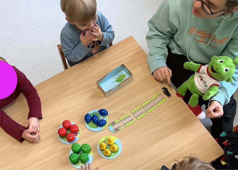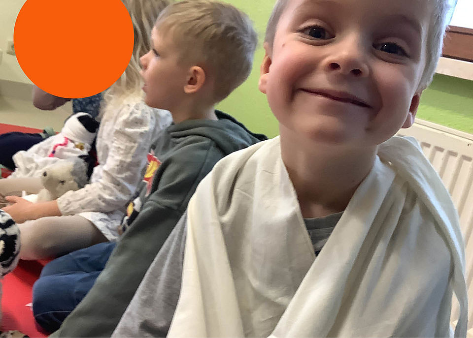 Ein weiteres Highlight war der Besuch von Frau Günther vom DRK Kreisverband Jena-Eisenberg-Stadtroda e.V., die gemeinsam mit den Vorschülern spannende und wichtige Inhalte zum Thema Erste-Hilfe mit Selbstschutzinhalten vorgestellt hat. Kindgerecht und spielerisch haben die Kinder viel Wissen erworben und dieses an ihren Kuscheltieren erprobt.