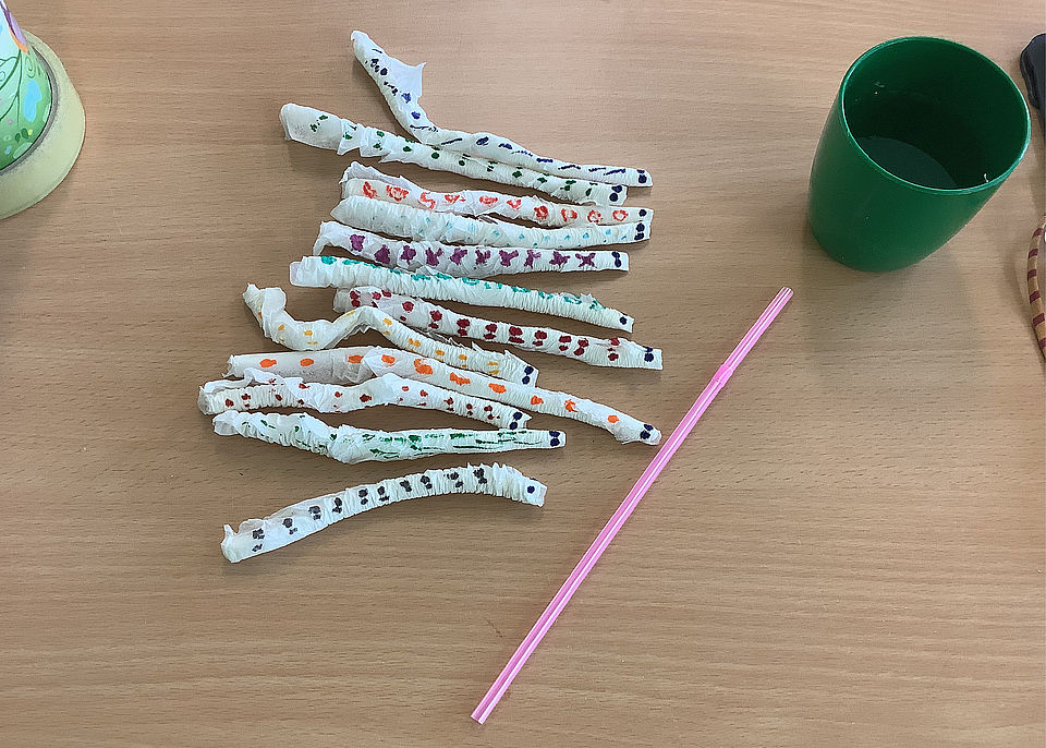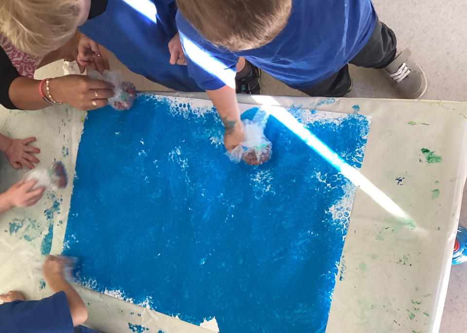 Und danach blubberten wir um die Wette! Neben dem ein oder anderen Fleck auf unserer Kleidung zauberten wir mit roten, grünen, blauen und gelben Seifenblasen die verschiedensten farbigen Muster auf Papier. Ein kunterbuntes Farbspektakel, das den Sommer final einläutete.