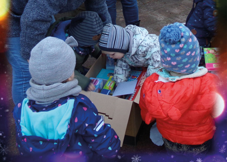 Am Montagmorgen des 19. Dezembers staunten wir nicht schlecht, als ein großer weihnachtlich vezierter Karton vor unserem Kita-Eingang stand.