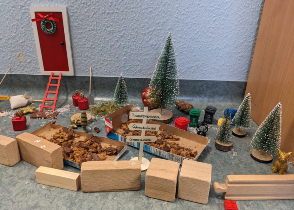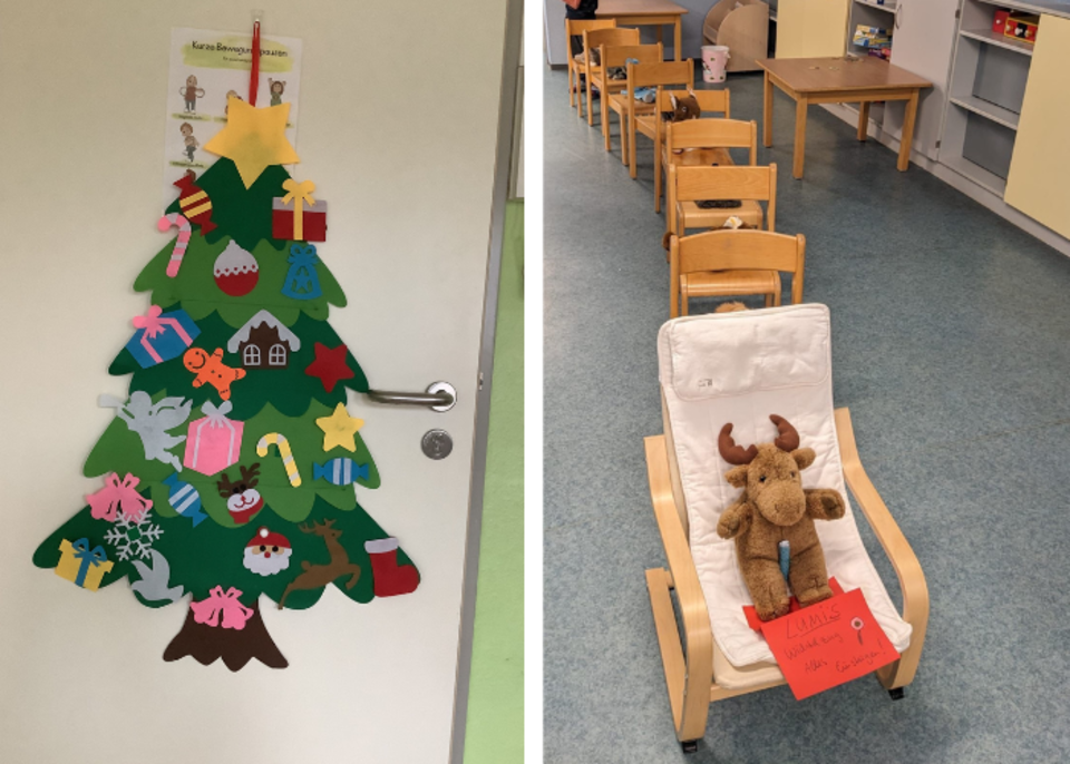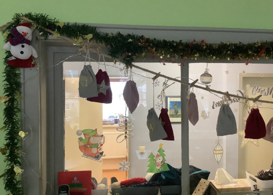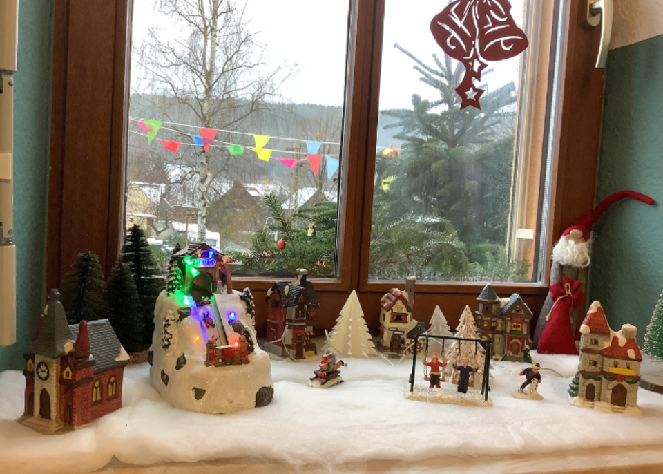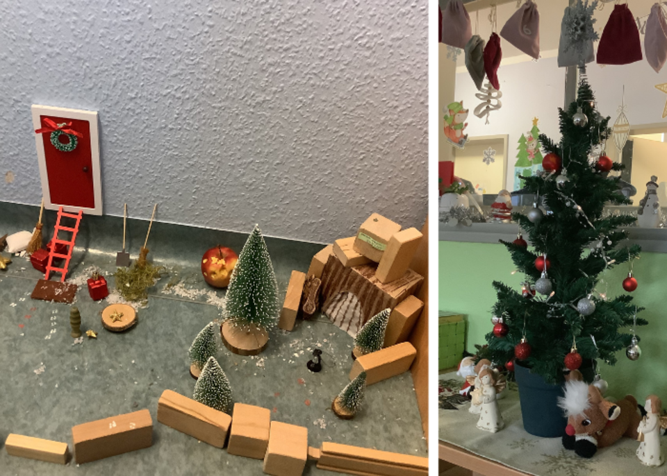 Ene mene, wie im Traum, wir schmücken… unseren Kindergarten und nicht nur einen Baum! Rentier-Fensterbilder? Check. Lichterketten? Ganz viele! Weihnachts- und Schneemännerfiguren? Auf jeden Fall! Tannenduft und natürlich die Kalender für die Kinder durften auch nicht fehlen. Im Handumdrehen wandelte sich der Wirbelwind in ein weihnachtliches Winterwunderland, welches die großen und kleinen Wirbelwinde auf die Adventszeit einstimmte.