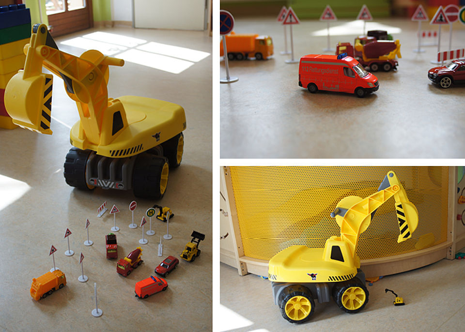 Zudem staunten die kleinen und großen Wirbelwinde nicht schlecht, als sich plötzlich mehrere Baufahrzeuge in unserem Garten niedergelassen haben. Es wird unermüdlich gehämmert, gebaggert und geschaufelt. Das sorgt für viele spannende und laute Beobachtungen, die wir in unserem Baustellentagebuch verewigen und gemeinsam auswerten.