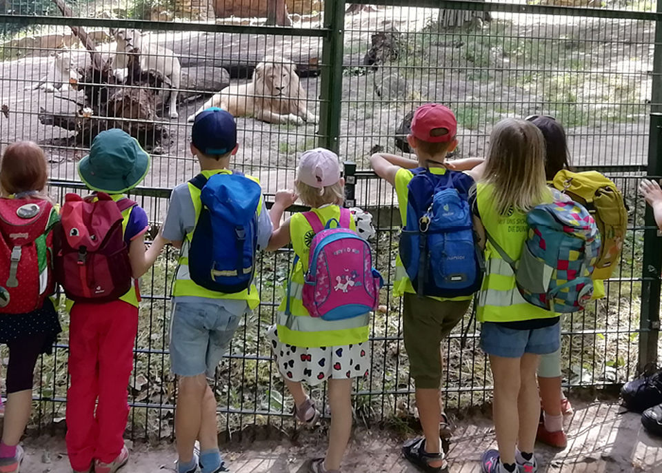 Nach unserem weltraumhaften Eintauchen in das Planetensystem wünschten sich unsere Vorschüler*innen einen Ausflug in die Tierwelt. Nichts leichter als das: Sonnencreme ins Gesicht, Rucksäcke schultern und auf ins Abenteuer! Im Tierpark Gera staunten wir bei strahlendem Sonnenschein über eine Vielzahl von Primaten, erstarrten voller Ehrfurcht vor den Raubtieren, erfreuten uns an dem bunten Gefieder der Vögel, lauschten dem Röhren der Huftiere und hüpften mit den Kängurus.