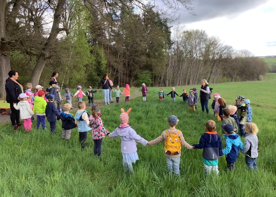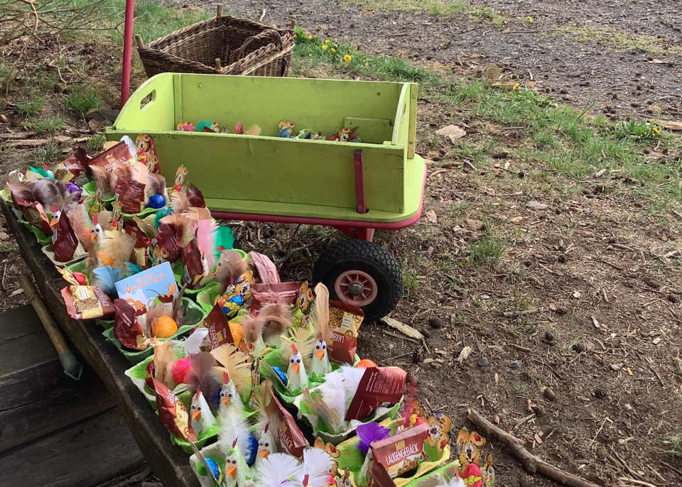 Schuhe an, Rucksack geschultert, Fernglas gezückt und los ging die Osterwanderung. Die kleinen und großen Wirbelwinde machten sich auf und ergründeten die hiesige Flora. Dabei war das Ziel klar: gemeinsam finden wir den Osterhasen! Und tatsächlich staunten wir nicht schlecht, als wir seine Spur bis in den Topfwald verfolgten und Unmengen an kleinen Ostergeschenken fanden. Ein Foto von dem Osterhasen blieb uns leider verwehrt, aber immerhin konnten wir einen kurzen Blick auf seinen flauschigen Puschelschwanz erhaschen. Wir geben trotzdem nicht auf und versuchen unser Glück im nächsten Jahr erneut.
