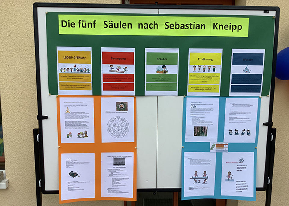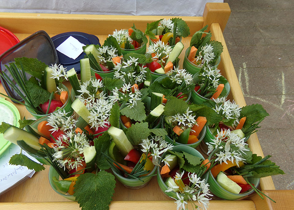 „Wir sind Kneippianer Kinder, sind fröhlich, fit und stark! Wir brauchen viel Bewegung und essen gerne Quark!“ Zum diesjährigen Kneipp-Fest lauschten wir einigen Ohrwürmern unserer Musikgruppe und kamen so richtig in Partystimmung. Die kleinen und großen Wirbelwinde tischten zudem allerhand auf: Ob der ´selbstgebraute´/hauseigene Apfelschorle-Kräutertraum, selbstgebackene Brötchen oder Löwenzahnbutter, Aivar-Knoblauchaufstrich und Meerrettich-Preiselbeer-Dipp – kulinarisch war einiges geboten und die Geschmacksknospen kamen vollends auf ihre Kosten. Daneben gab es beim kunterbunten Kinderschminken, den Informationsständen zu den fünf Säulen nach Sebastian Kneipp inklusive eines Bewegungsparcours, unserem Bärlauch- und Kräutersalz-Stand sowie einem Pflanzenwagen allerhand zu entdecken.