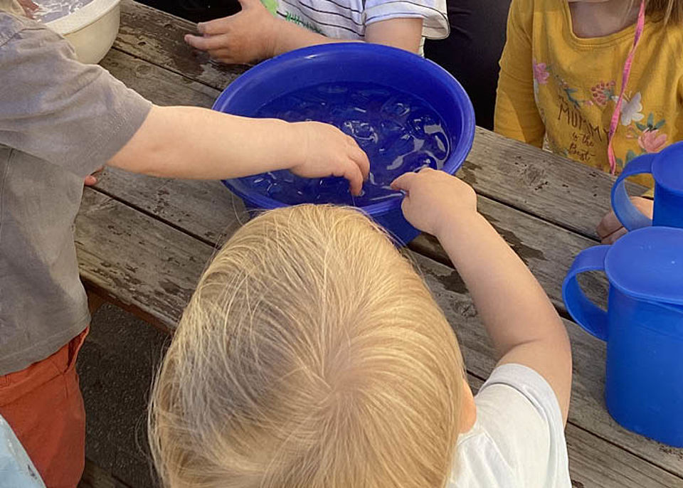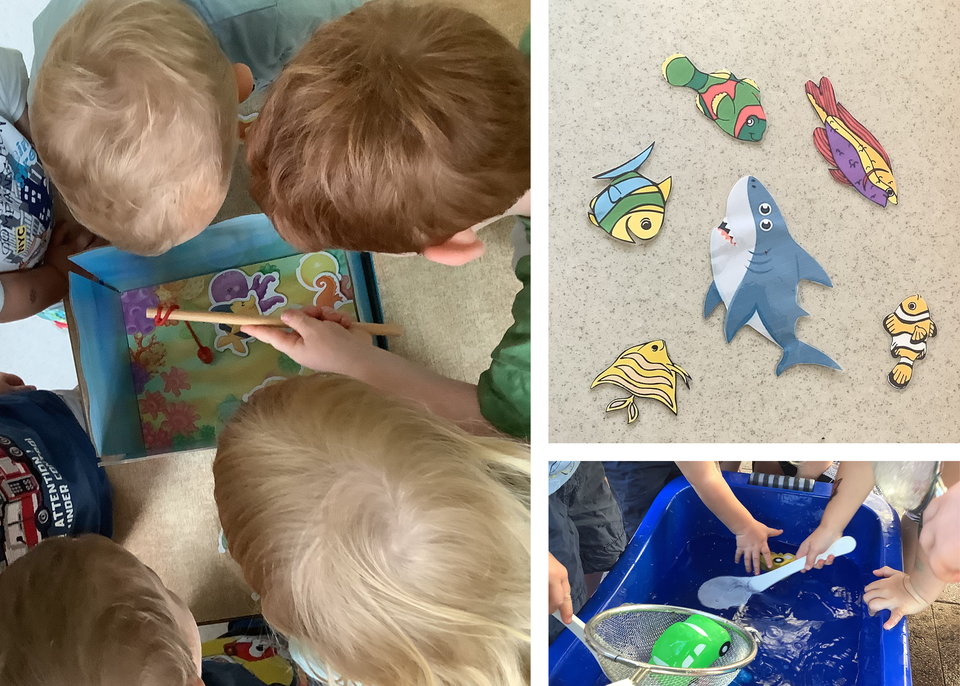 In unserem Projekt „Wasser und Fische“ entdeckten die kleinen Wirbelwinde kunterbunte Kiementräger, schwenkten den Pinsel für farbenfrohe Unterwasserbilder, ölten die Tanzbeine und Klangstöcke, um zu fischigen Liedern zu musizieren, und hatten spritzigen Spaß bei Wasserspielen.