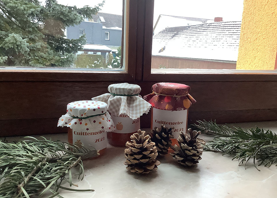Erst schälen, schneiden, kochen und dann Wasser, Zimt und Gelierzucker dazu. Et voilà: die Quittenmarmelade à la Wirbelwind steht zum Verzehr bereit. Viele fleißige Hände halfen mit, die Unmengen an Quitten zuzubereiten und das Ergebnis war zimtig-süß und einfach nur köstlich.