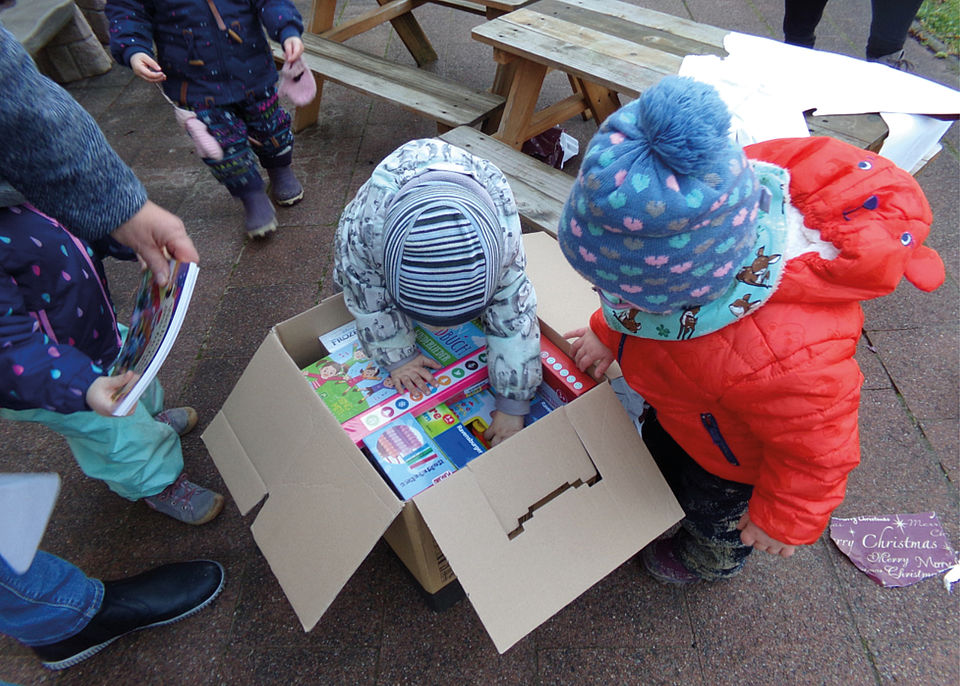 Apropos Unerwartetes: Eines kalten Dezembermorgens fanden wir auf unserer Türschwelle einen riesigen Berg voller Geschenke. Neben Spiel- und Bastelsachen packten wir zahlreiche Bücher und einen kunterbunten Schminkkasten aus. Die Kinder und Erzieher*innen freuten sich riesig über die anonymen Aufmerksamkeiten. Wir bedanken uns herzlich für diese tolle Weihnachtsüberraschung!