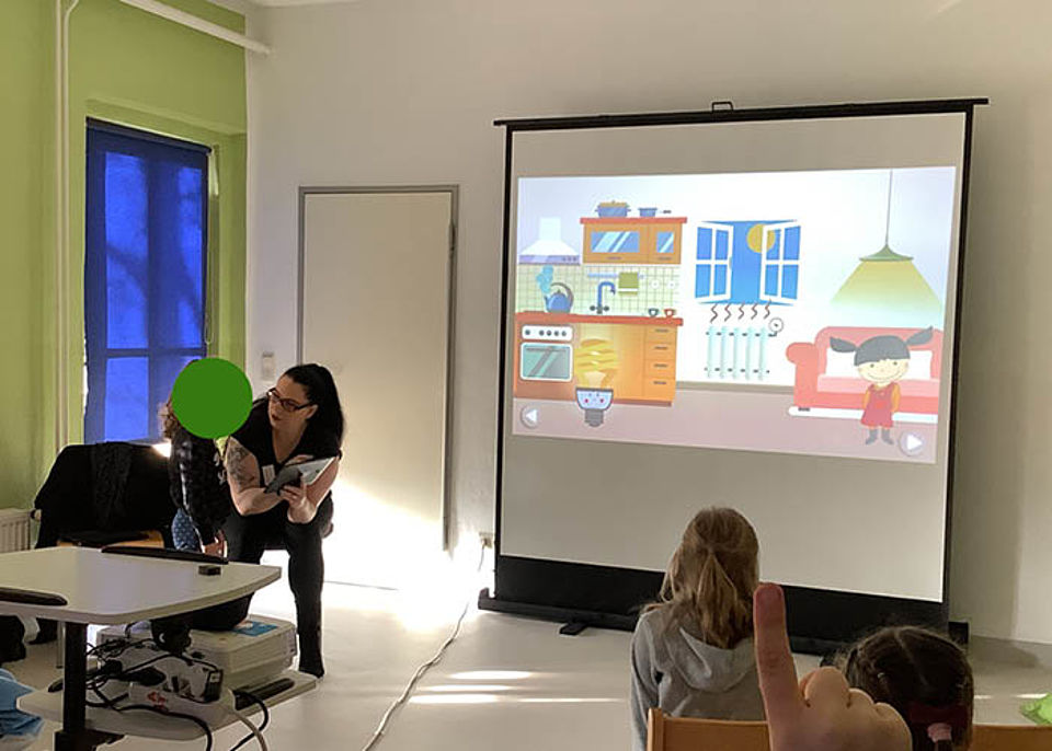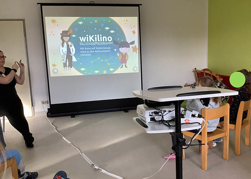 Die Kinder machten sich auf eine aufregende Entdeckerreise zu den Achtsamkeitsplaneten. Dort beschäftigten sie sich mit den unterschiedlichen Aspekten der Achtsamkeit gegenüber unserer Umwelt. Die interaktiven Filme, die spannenden Geschichten, die Lieder und Tänze machten den Kindern riesigen Spaß und vermittelten ihnen nachhaltig wertvolles Wissen. Die Referentin Frau Keil aus dem Momolino-Team konnte die Kinder begeistern und so wurde der Vormittag ein voller Erfolg.