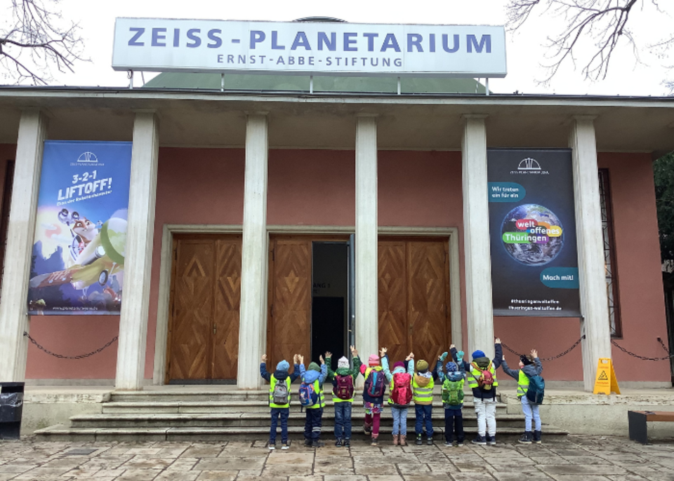 Das neue Jahr begann für unsere Vorschüler*innen gleich mit einem ersten Höhepunkt. Wir starteten unsere Exkursion in das Zeiss-Planetarium in Jena. Nach einer Erkundungstour durch die Lichtstadt machten wir uns auf den Weg, um in die Weiten des Weltalls sowie in die Welt von Raketen, Schwerkraft und Robotern einzutauchen.