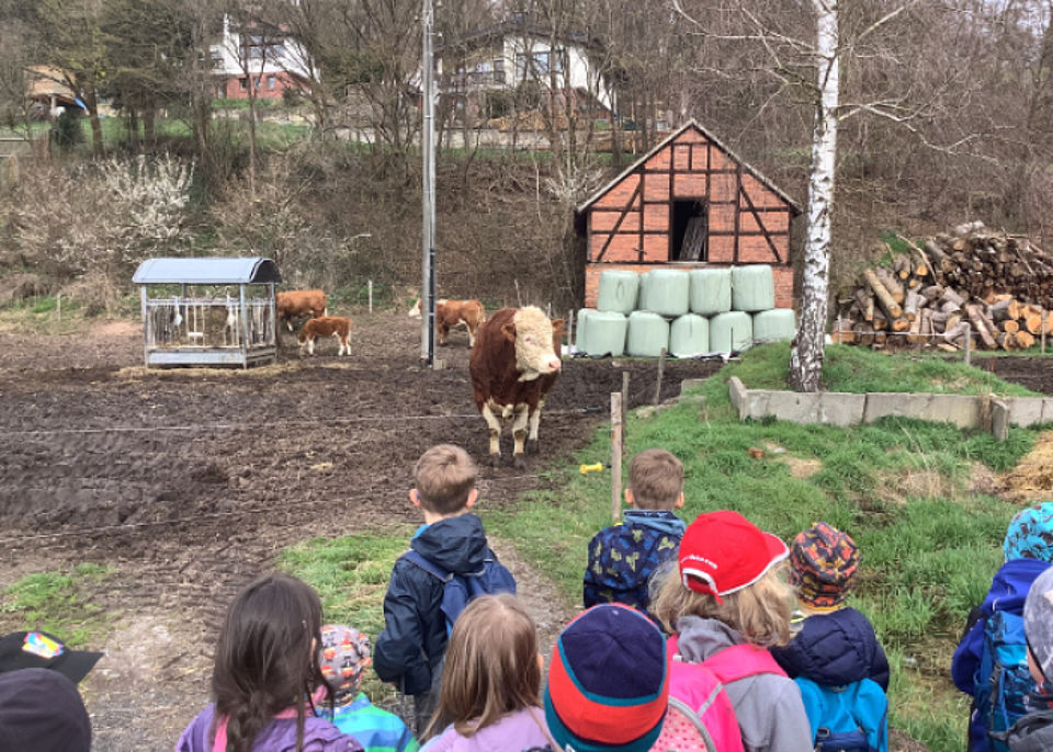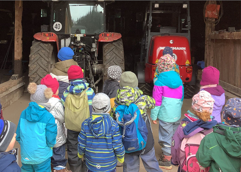 Welche Tiere leben eigentlich auf dem Bauernhof und wie verhält man sich ihnen gegenüber? Und welche Nahrungsmittel kommen von den Landwirt*innen? Diesen und anderen Fragen gingen wir bei dem Besuch eines regionalen Bauernhofs auf den Grund. Es gluckte, wieherte, muhte, grunzte, tuckerte und kicherte aus allen Ecken, als die kleinen Wirbelwinde den Hof inspizierten. Neben jeder Menge Streicheleinheiten gab es für die Tiere zudem die ein oder andere Möhre oder getrocknete Scheibe Brot.