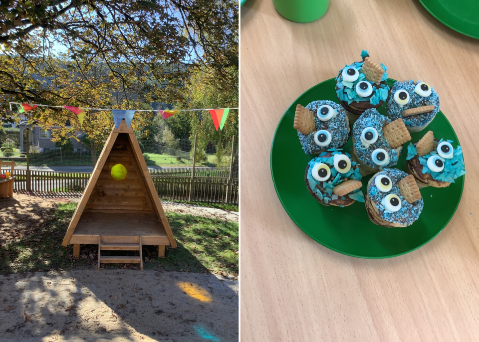 Wir möchten uns von ganzem Herzen bei allen Familien für die großzügigen Spenden bedanken, die durch den vom Elternbeirat ausgetragenen Kuchenbasar und die Eröffnung unseres neuen Spielplatzes zusammengekommen sind. Dank dieser Unterstützung konnten wir eine wunderschöne Outdoor Waldhütte für unseren Kindergarten kaufen. Das überschaubare aber feine Häuschen bietet den kleinen und großen Wirbelwinden einen zusätzlichen Rückzugsort und verschönert obendrauf unseren Außenbereich mit seinen bunten Fenstern.