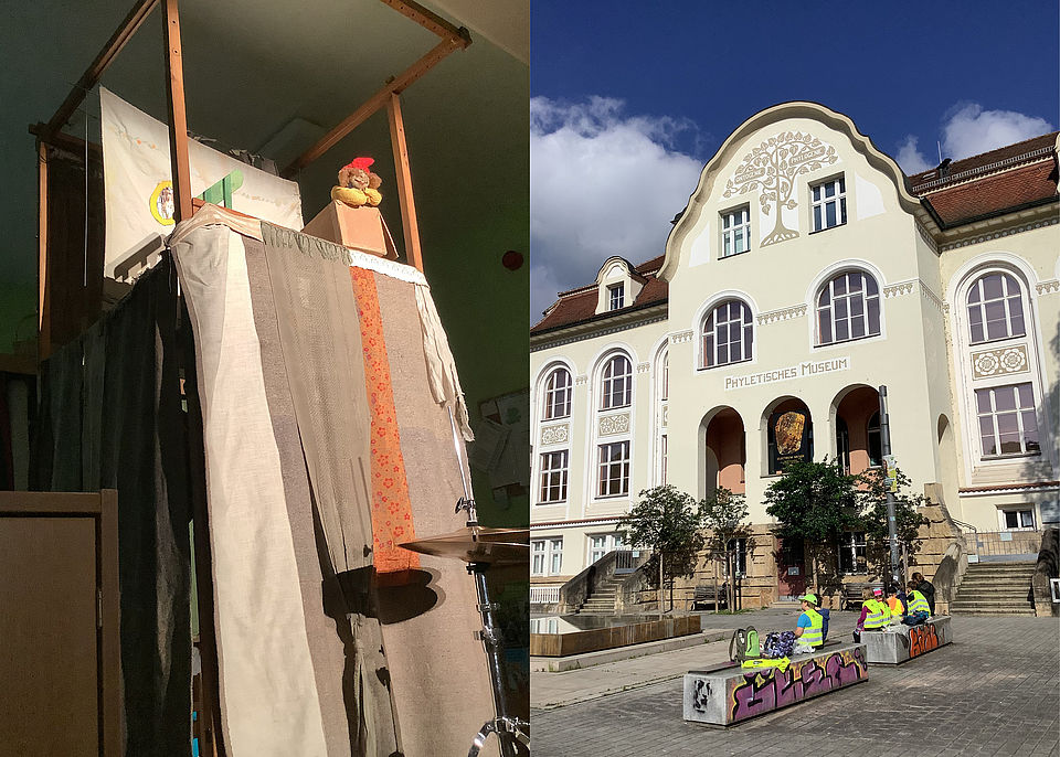 Außerdem war es an der Zeit für unsere Vorschüler*innen, sich auf ihre zweite Exkursion zu begeben. Ziel war das Phyletische Museum in Jena. Gemeinsam mit Nachtfalter Fridolin machten wir uns auf den Weg, um mehr über Schmetterlinge zu erfahren und gingen der Frage nach, was eigentlich passiert, wenn Fridolin plötzlich tagsüber durch die Luft fliegen würde…