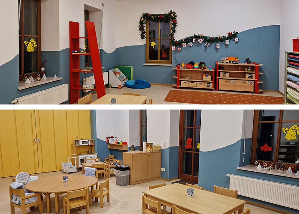 Die Einschränkungen haben ein Ende und unsere Marienkäfer dürfen ihr neues Zimmer wieder bewohnen und bespielen. Auch der Flur darf wieder betreten werden, was wegen der frischen Farbe für ein paar Tage strikt untersagt war. Aber seit Anfang Dezember sind die Malerarbeiten in unserem Haus abgeschlossen. Das Marienkäferzimmer, der obere Flur und das große untere Bad im U3-Bereich erstrahlen wieder in neuem Glanz.