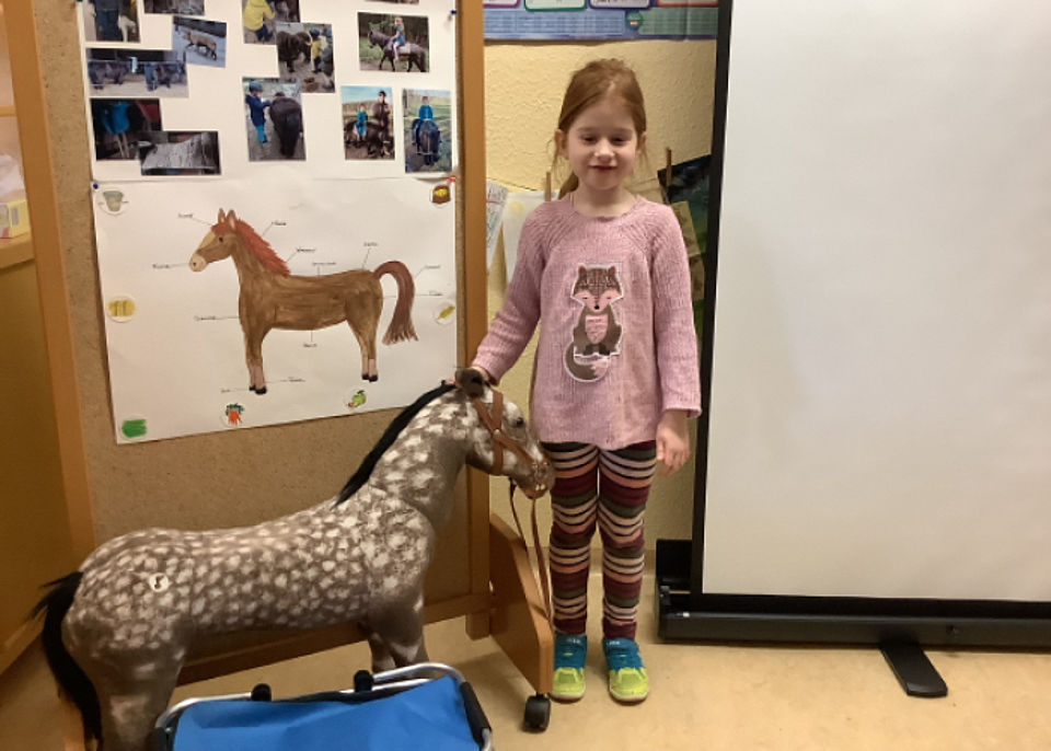Und auch die Vorschüler*innen widmeten sich erneut ihren Expertenvorträgen. Ob Kuscheltier, Pferde, Kontrabass oder Schafe – die Kinder machten vor keinem Thema halt und hatten jede Menge Spaß beim Präsentieren.
