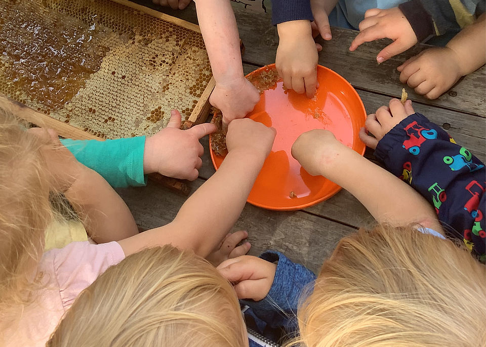 Was krabbelt, summt und brummt denn da? Und was duftet hier so gut? In unserem Projekt ´Bienen und Blumen´ erforschten unsere kleinen Wirbelwinde mit spannenden Experimenten die Welt der Insekten und Pflanzen. Wir kosteten Kräuter, trällerten passende Lieder, schnabulierten Honig, inspizierten Bienenwaben und am allerwichtigsten: Wir hatten riesigen Spaß!