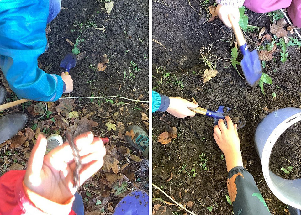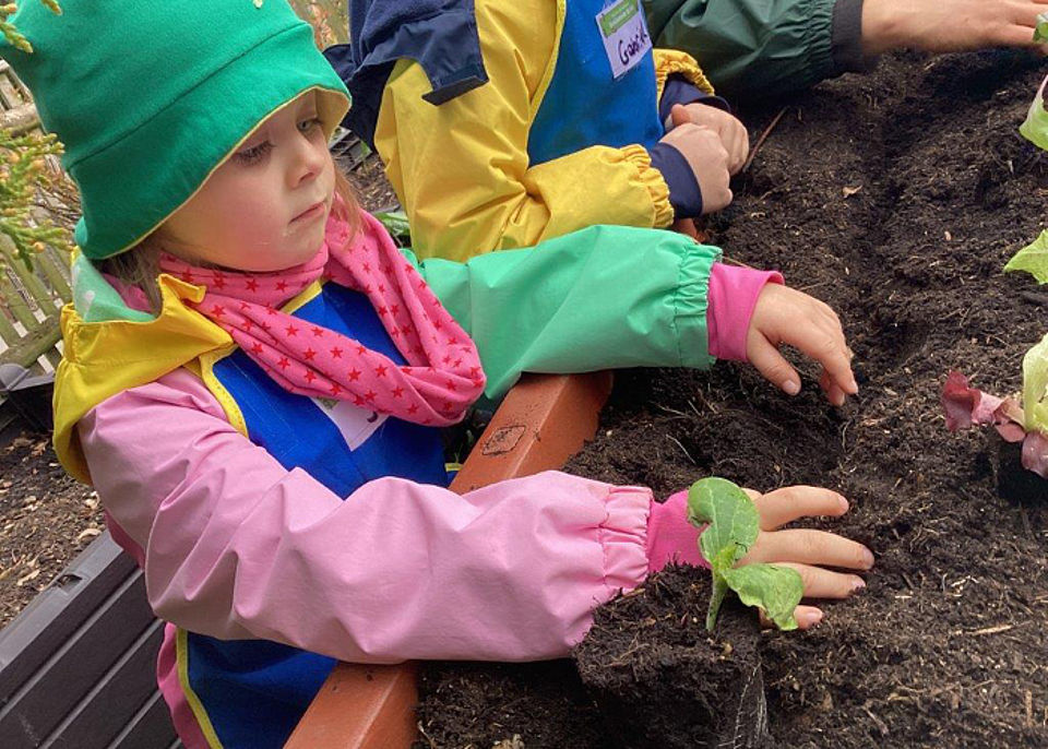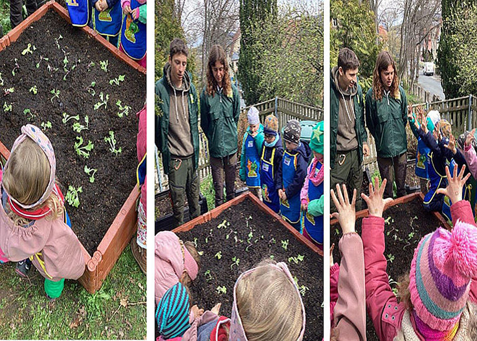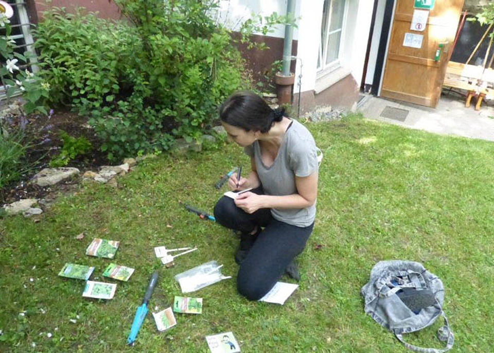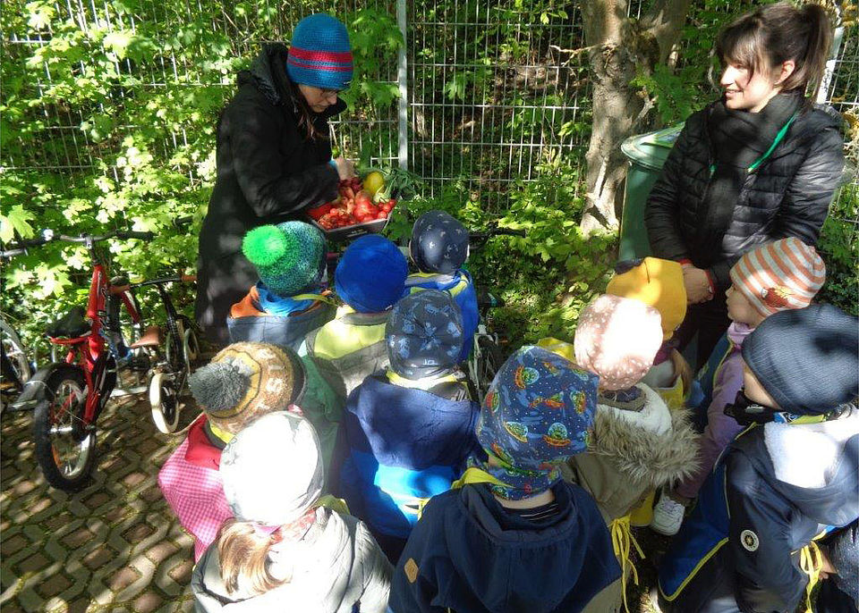 Mit Fett und vielen Samen sowie Vogelkörnern bereiten wir Meisenknödel zu. Danach hängen wir sie überall im Bummi-Garten auf und beobachten gemeinsam die Vögel bei ihrer Mahlzeit.