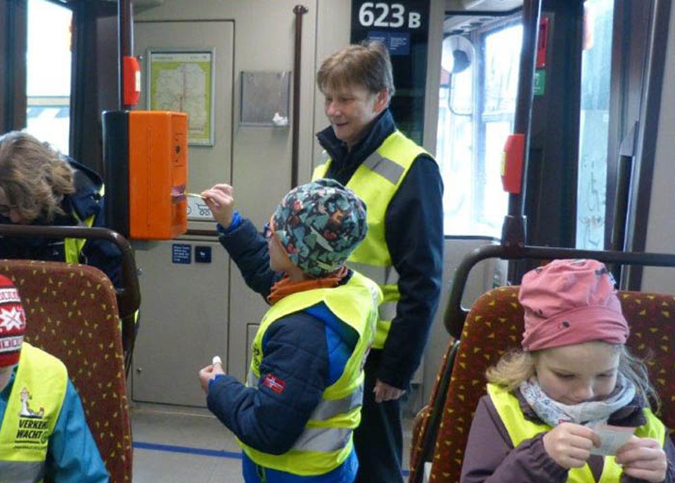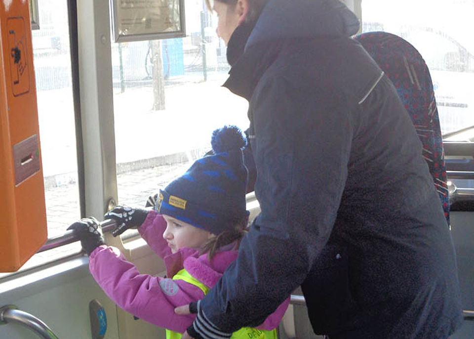 Zwei nette Servicemitarbeiterinnen erklärten den Kindern, wie man sich richtig im Bus und in der Straßenbahn verhält und was erlaubt ist und verboten.