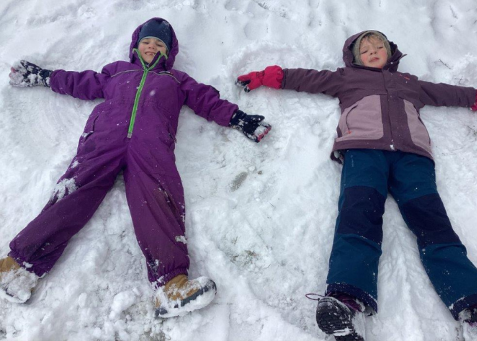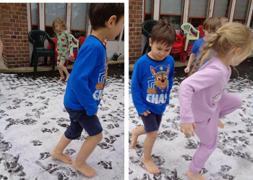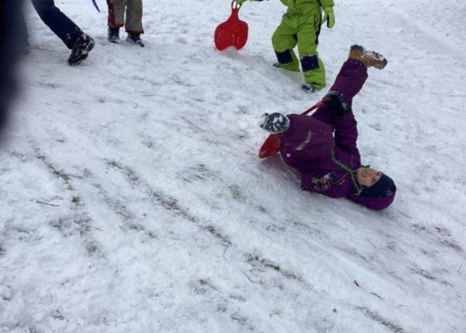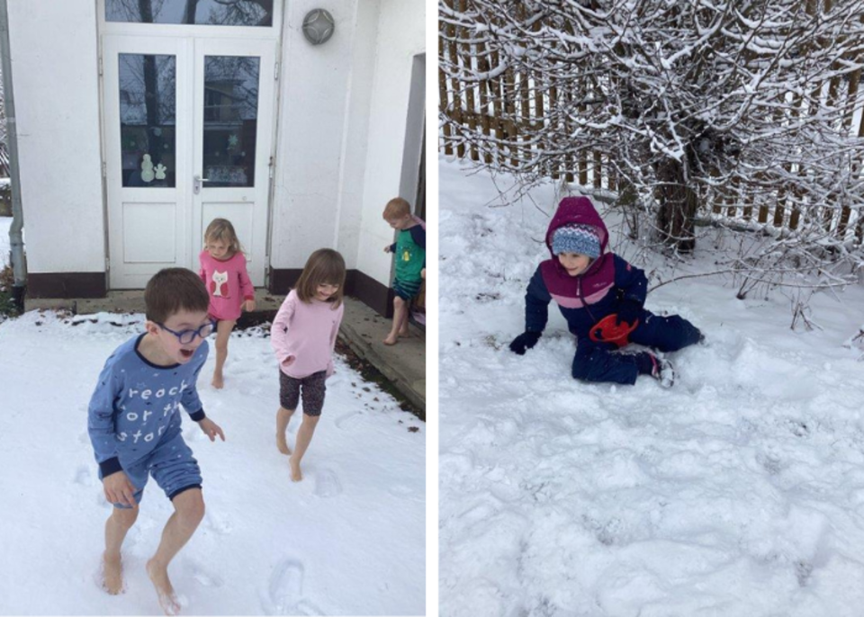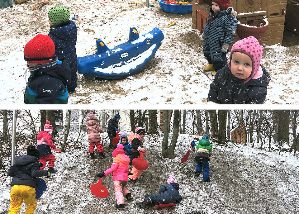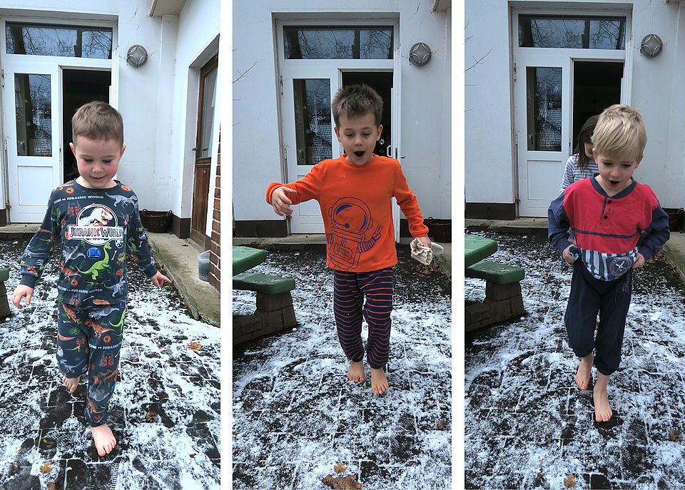 So auch unsere kleinen Bummis. Wenn Wassertreten im Garten nicht geht, nehmen wir einfach den Schnee.