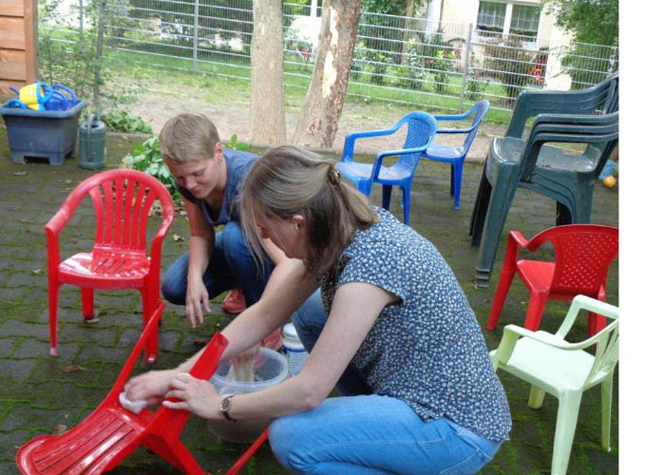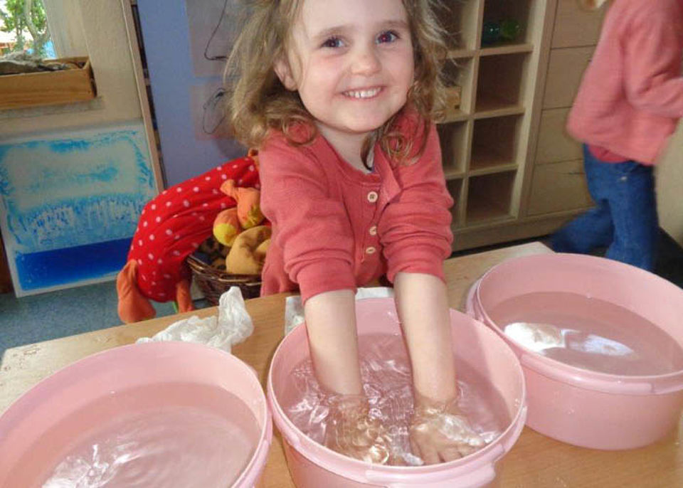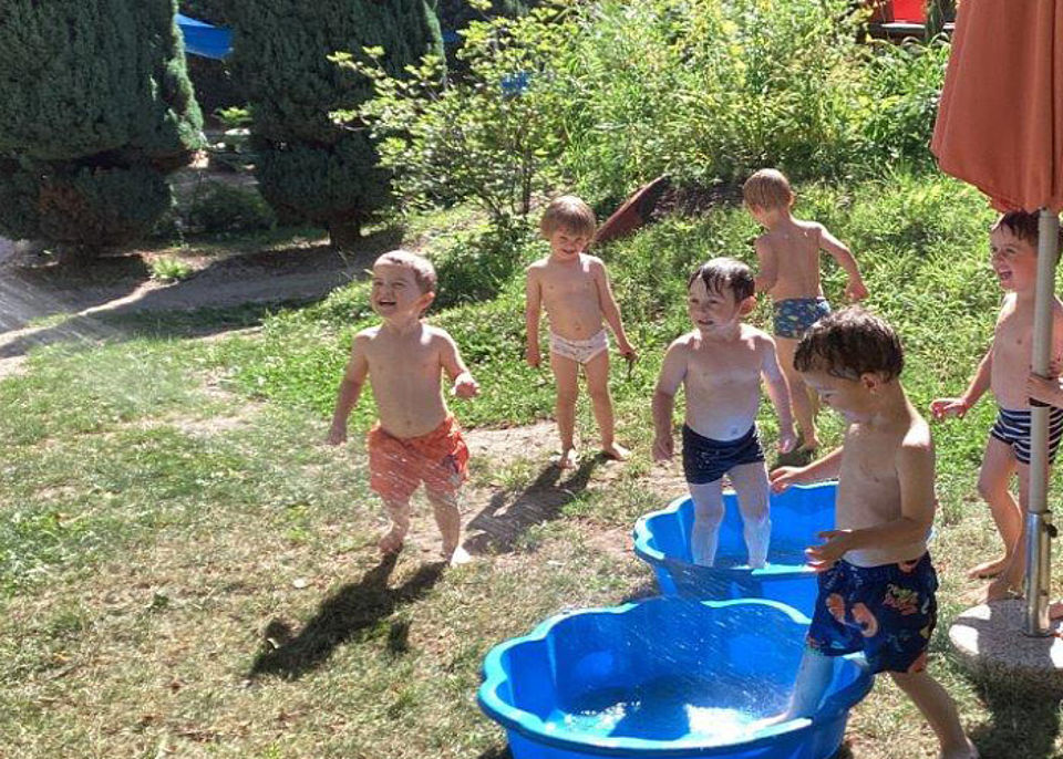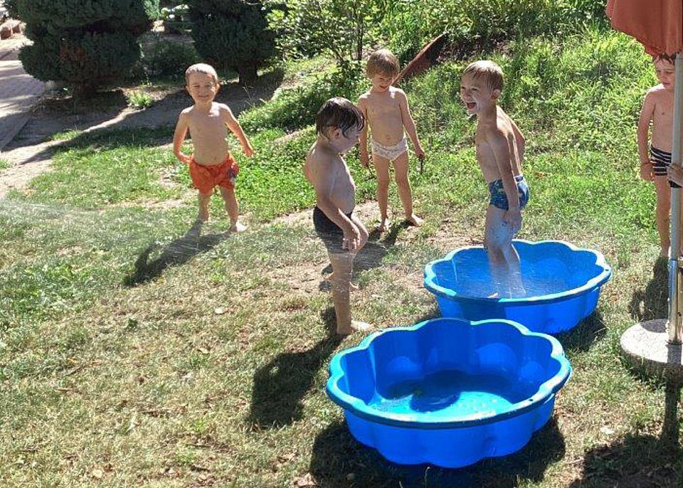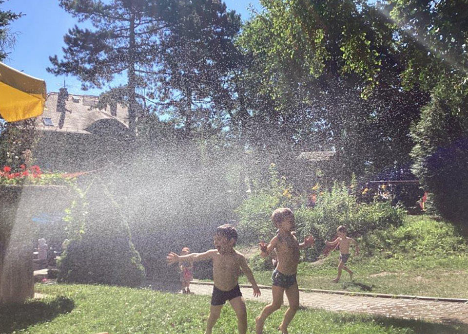 In der heißen Sommerzeit finden Oberkörper- und Unterkörperwaschungen regelmäßig statt. Diese Anwendungen sind sinnvoll, da alle Kinder mit Freude dabei sind, sich dabei wohlfühlen und es Spaß macht. Nach der Arndt-Schulz-Regel entfachen die milden Wasserreize die Lebensfunktionen und unterstützen die Selbstheilungskräfte des Körpers. Denn gut dosiert im Temperaturspektrum zwischen 0 Grad und 18 Grad Celsius kräftigt und fördert der Wasserreiz.