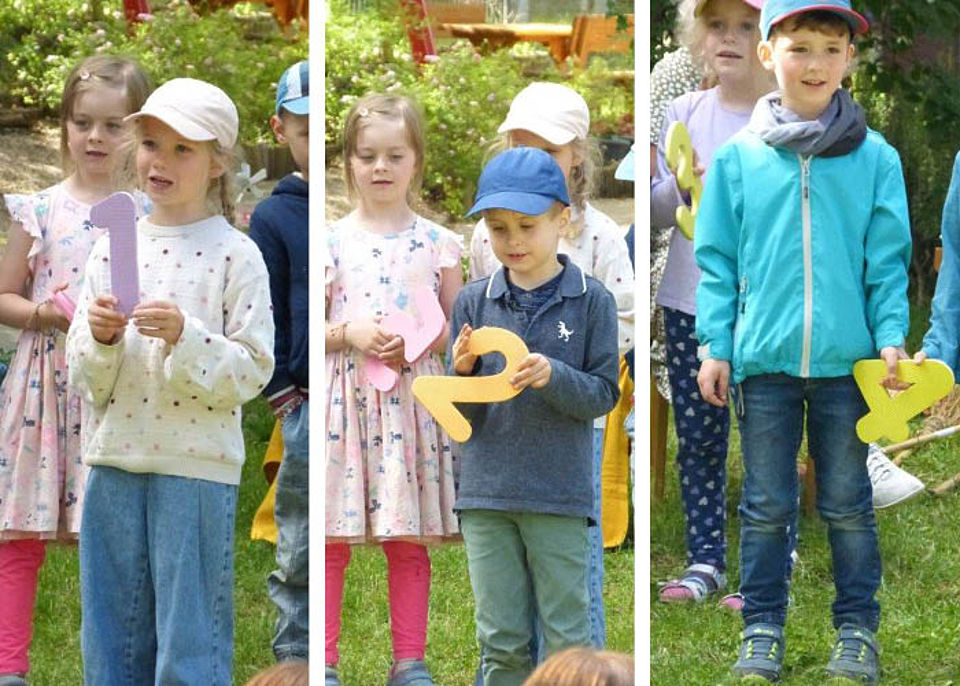 In diesem Jahr gehen 17 Kinder aus unserem Kindergarten in die Schule. Die Kindergartenzeit ist prägend für den weiteren Werdegang. Alle Kinder lernen in dieser Zeit Laufen, Hüpfen, Springen, Klettern, selbstständig Essen, selbstständig die Toilette zu benutzen, Essen mit Messer und Gabel, Regeln aushandeln mit anderen, mal Zweiter oder Dritter sein, Hinfallen und Aufstehen und nochmal Probieren, spielen zu zweit zu dritt und noch vielen Kindern mehr, Wandern, sich orientieren, anderen Menschen vertrauen zu können und noch so vieles mehr.