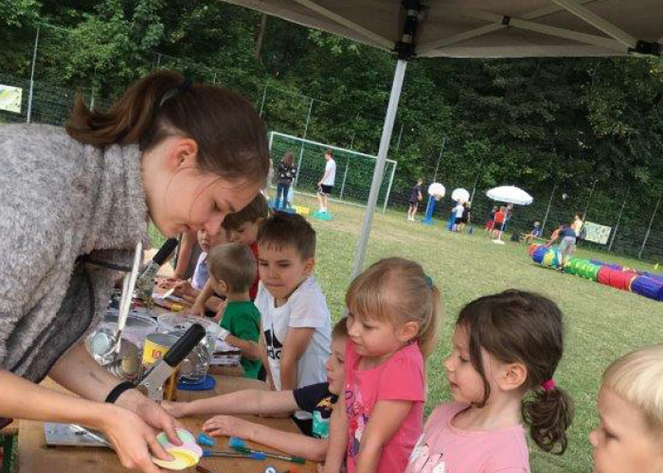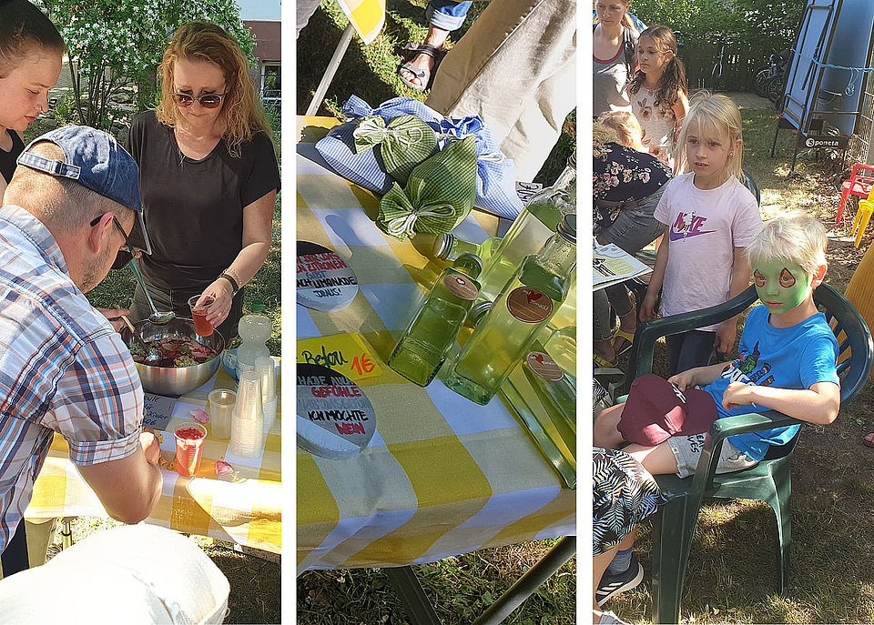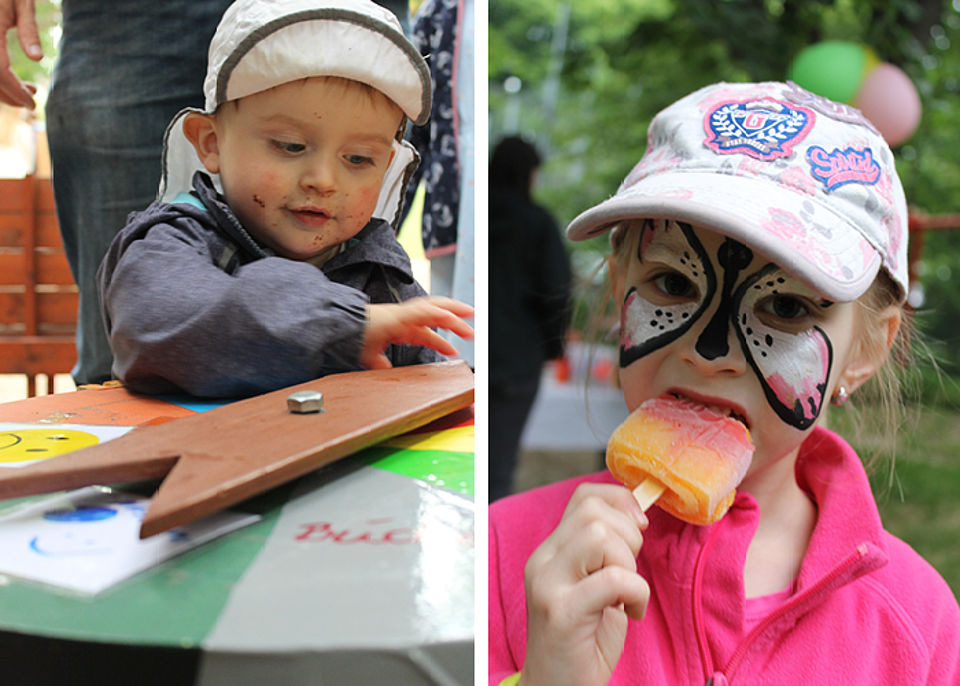 Nach dem Unterhaltungsprogramm gab es für Groß und Klein jede Menge zu erleben in unserem Garten vor der Kita. Verschiedene Stationen zum Staunen (ein Vulkanexperiment), Kinderschminken, Basteln, eine Wasserstation und natürlich selbstgebackenen Kuchen, Kaffee und Früchtebowle gaben Anlass zum Verweilen und für viele angeregte Gespräche.