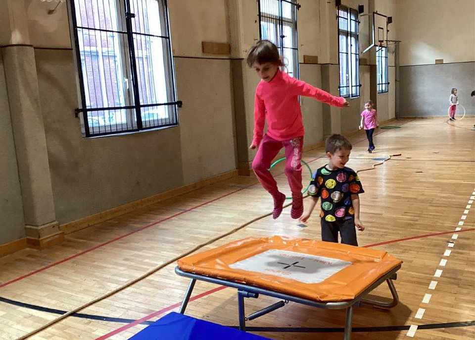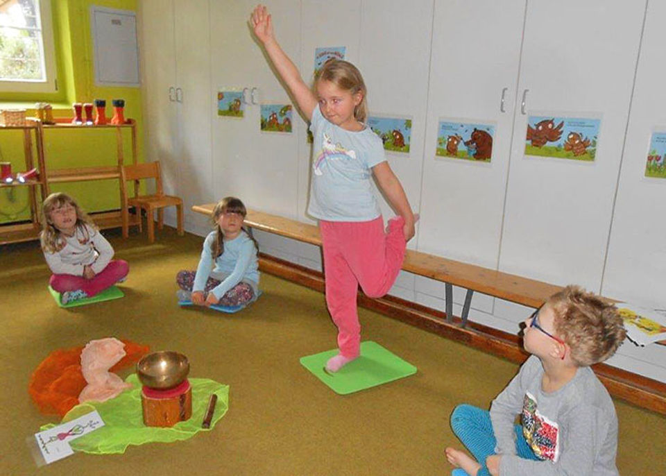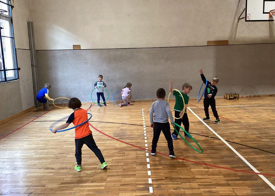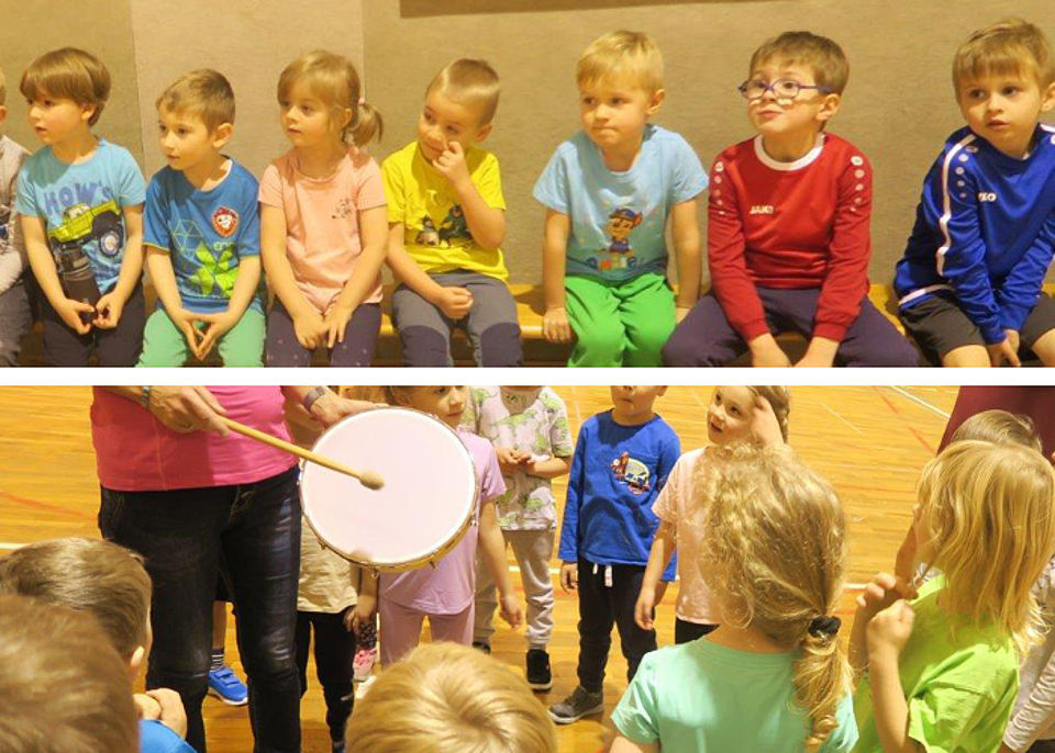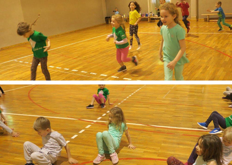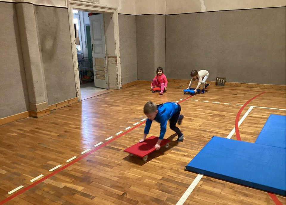 Hier warten viele Bewegungsangebote für Kinder der beiden ältesten Gruppen auch in der kalten Jahreszeit. Die Kinder hatten viel Spaß an den Bewegungsspielen und Gymnastikübungen. Es wurden außerdem Hindernisparcours aufgebaut und die Kinder erprobten sich an verschiedenen Sportgeräten.