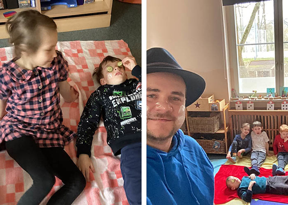 Zum Fragezeichentag am 27.03.2025 haben wir uns alle eine Gesichtsmaske gegönnt. Wir haben eine Honig-Quark-Masse angemischt und diese dann selbst oder mit Hilfe von Freunden auf unserem Gesicht verteilt. Daraufhin haben wir es uns dann in unserer „Wellness-Oase“ (Bauraum) gemütlich gemacht und der tollen Ostergeschichte „Komm mit ins Osterhasenland“ gelauscht – das war die pure Entspannung und tat echt gut!