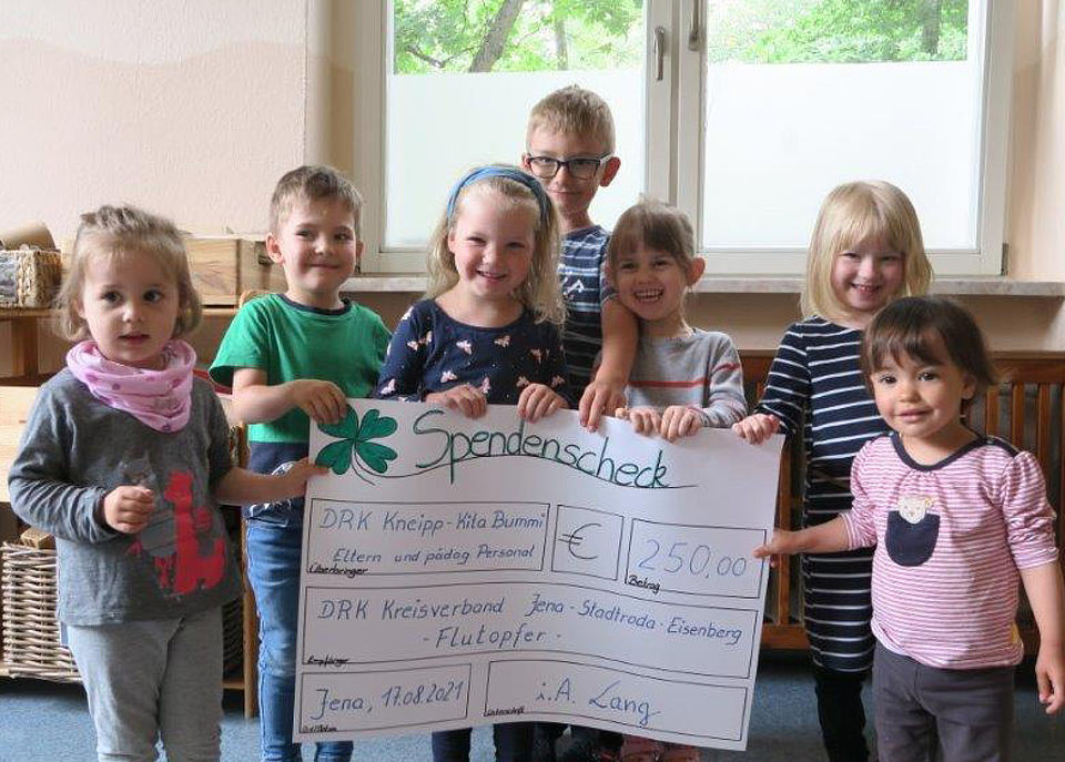 Im Zeichen der Grundsätze des Roten Kreuzes starteten die Mitarbeiter der DRK-Kneipp-Kita Bummi eine Spendenaktion zugunsten der Flutopfer im Westen Deutschlands.