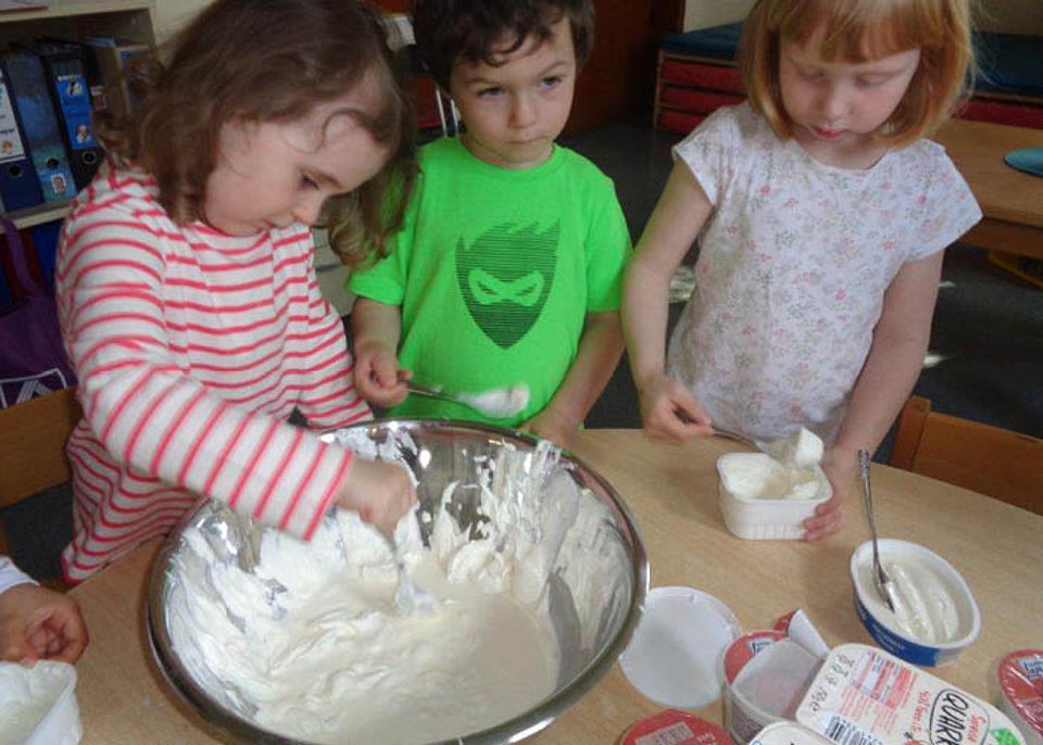 Beim Farbfest hörte die Suche nach dem "Weiß" noch längst nicht auf. Auch hier gibt es viele Sachen zu entdecken, wie zum Beispiel selbst gemachte weiße Quarkspeise.