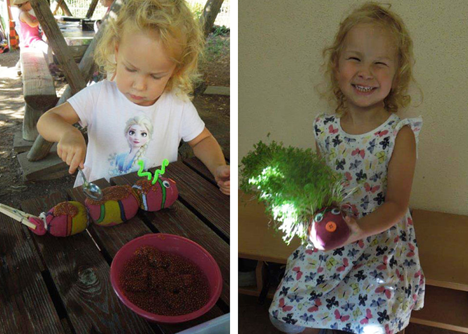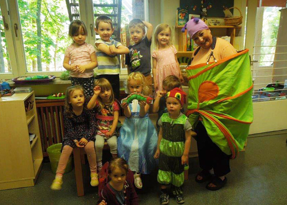 Zum Abschluss des Projekts „Raupe Nimmersatt" feierte die Gruppe Glühwürmchen ein Raupen und Schmetterlingsfest.