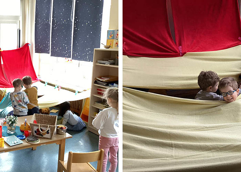 Buden zu bauen ist für uns das Größte! Ganz besonders wenn uns wie hier einer unserer Erzieher, hilft um sie noch größer und stabiler zu machen. Bei dieser tollen Bude hat uns der Martin geholfen und wir konnten den ganzen Vormittag mit vielen Freunden gleichzeitig darin spielen – das war ein großer Spaß!