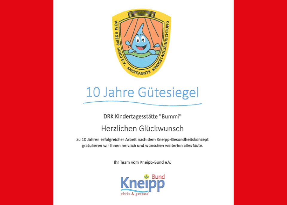 Wie doch die Zeit vergeht! Nun haben wir schon seit 10 Jahren ein Kneipp Gütesiegel und sind nach wie vor mit viel Eifer dabei. Wir sind stolz, eine Kneipp-Einrichtung zu sein und wollen auch in Zukunft weiterhin daran festhalten, dies auch zu bleiben. Kneippen ist spannend, kneippen ist gesund und vor allen Dingen macht kneippen mit den unterschiedlichsten Anwendungen sehr viel Spaß!