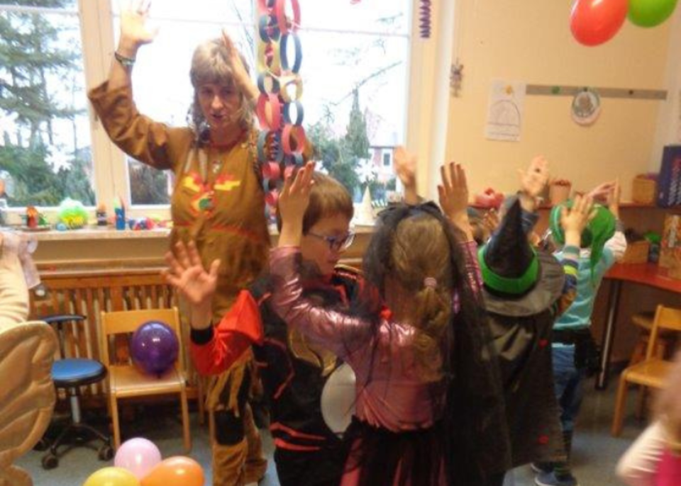 Darauf folgten viele Angebote rund um den Fasching: Wir bastelten Masken, naschten Süßigkeiten, präsentierten die Kostüme und tanzten natürlich auch ordentlich.