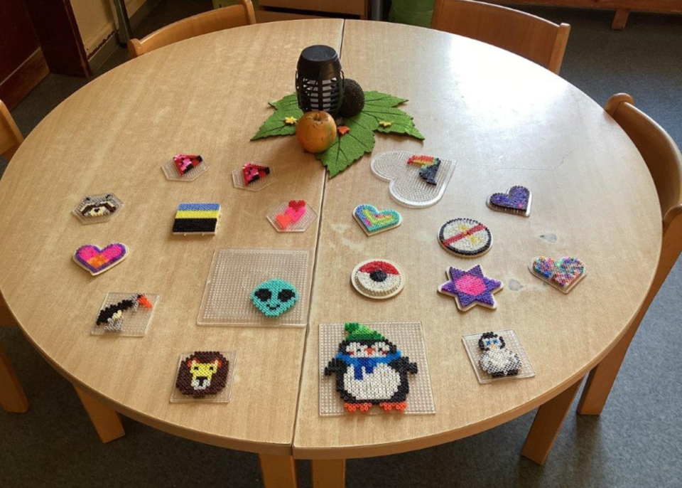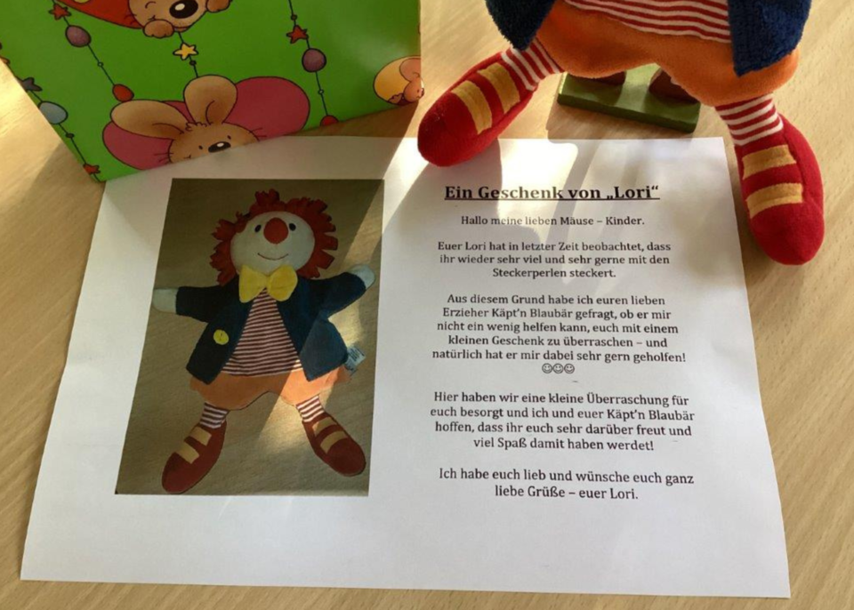 Gesagt, getan! – „Lori“ und Martin besorgten neue Steckerplatten und Motive, packten es gemeinsam ein und konnten somit unseren Großen, der Glühwürmchen- und Mäusegruppe,eine riesige Freude machen. J