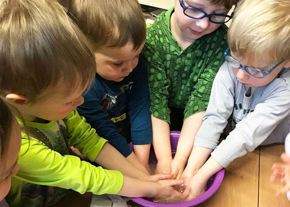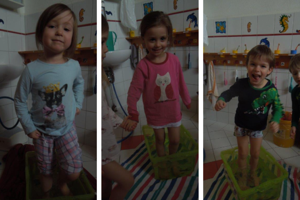 Ein uns wichtiger Leitgedanke in unserer pädagogischen Tätigkeit ist die Lehre nach Sebastian Kneipp. Ganzjährig kneippen die Kinder und Pädagogen im Kindergarten.