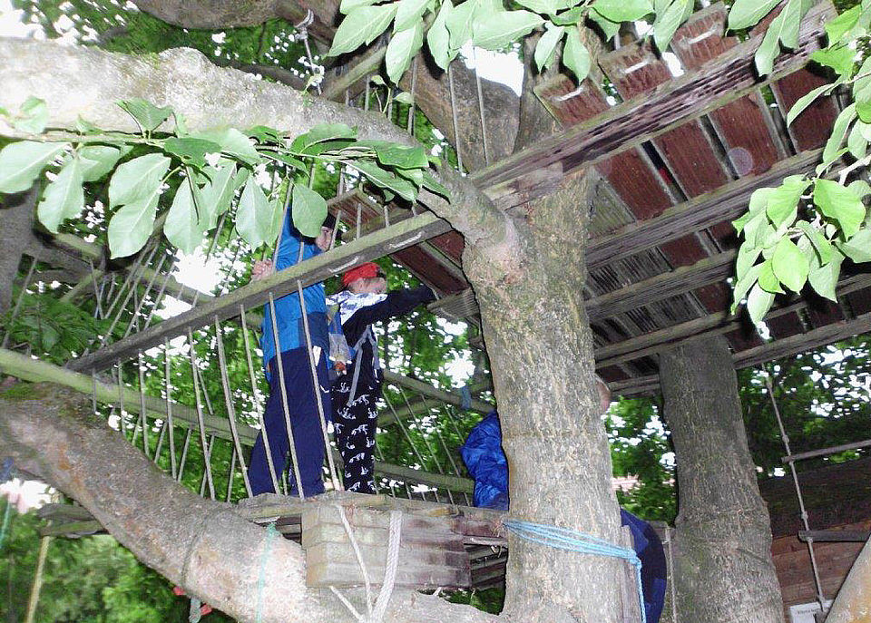 Das Baumhaus in einem riesigen Magnolienbaum war innerhalb kürzester Zeit erklommen und die kleinen Hände vom Basteln mit Lehm ordentlich verschmiert.
