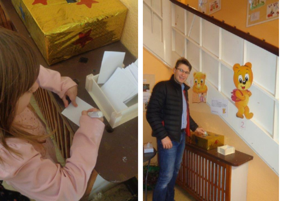 Wer hat das Wort? Wie geht wählen? Im Kinderparlament oder Kinderrat üben sich Kinder in demokratischen Ritualen und treffen Entscheidungen, die sie betreffen. Jedes Kind hat das Recht auf Partizipation und Teilhabe an gesellschaftlichen Kommunikations- und Entscheidungsprozessen – innerhalb wie auch außerhalb der Kita. Dieses Konzept leben wir natürlich auch in unserem „Bummi“ und nun war es wieder soweit – das jährliche Wählen der Kinderratsmitglieder im elementaren Bereich, sowie die Wahl der Vertrauenserzieher. Hier durften unsere Großen wieder ihre eigenen Gruppenvertreter und die Erzieher wählen, welche gemeinsam mit dem Kinderrat, in regelmäßigen Treffen über eventuelle Probleme, Sorgen, aber auch Wünsche und Verbesserungsvorschläge für den Alltag in unserer Kita diskutieren und besprechen können.