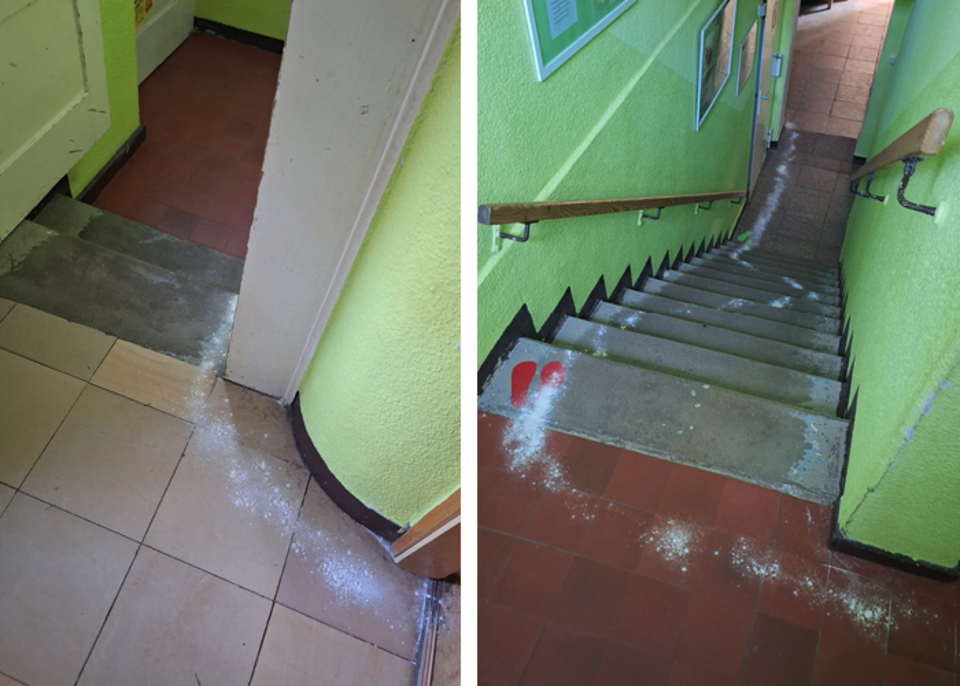 Somit gab es ein Schild für "Tür schließen", "Wasserhahn zudrehen" und "Licht ausmachen".