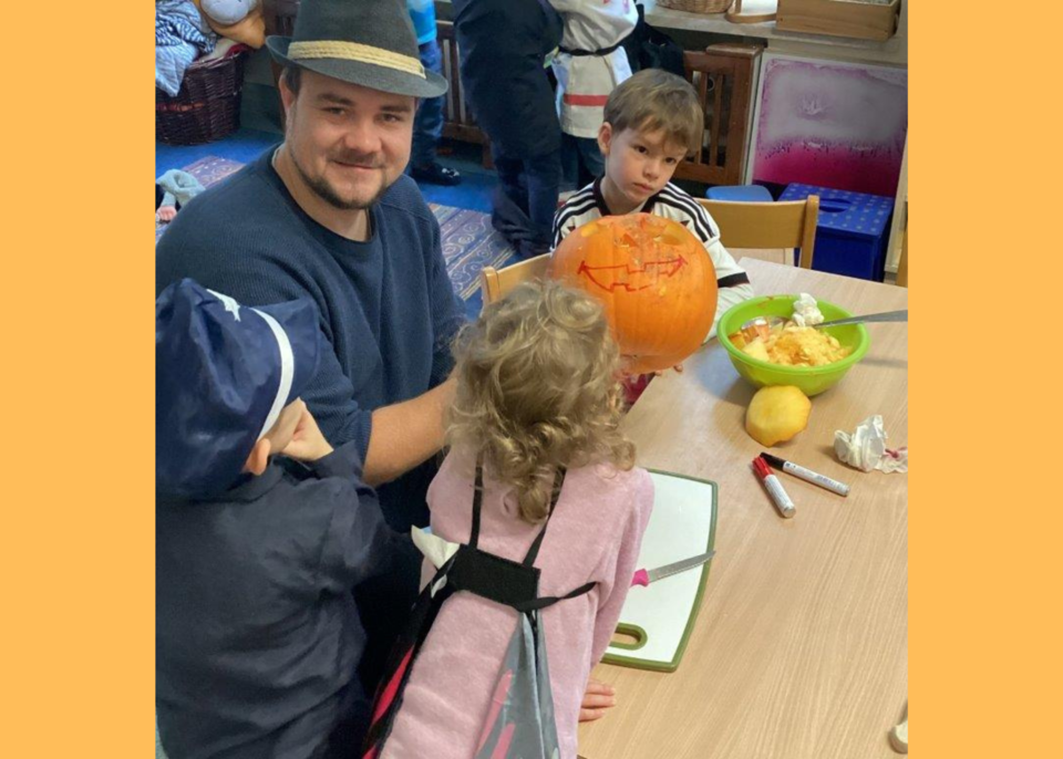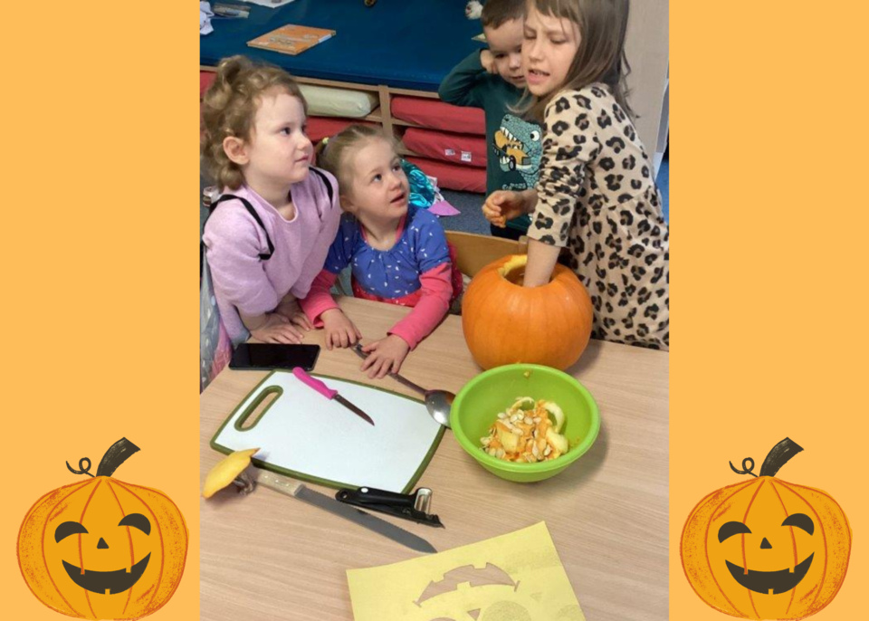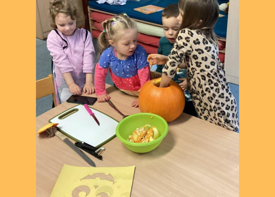 Die Bummis konnten sich beim gemeinsamen Kürbisschnitzen wunderbar austoben und tolle Gesichter in das große Gemüse schnitzen.