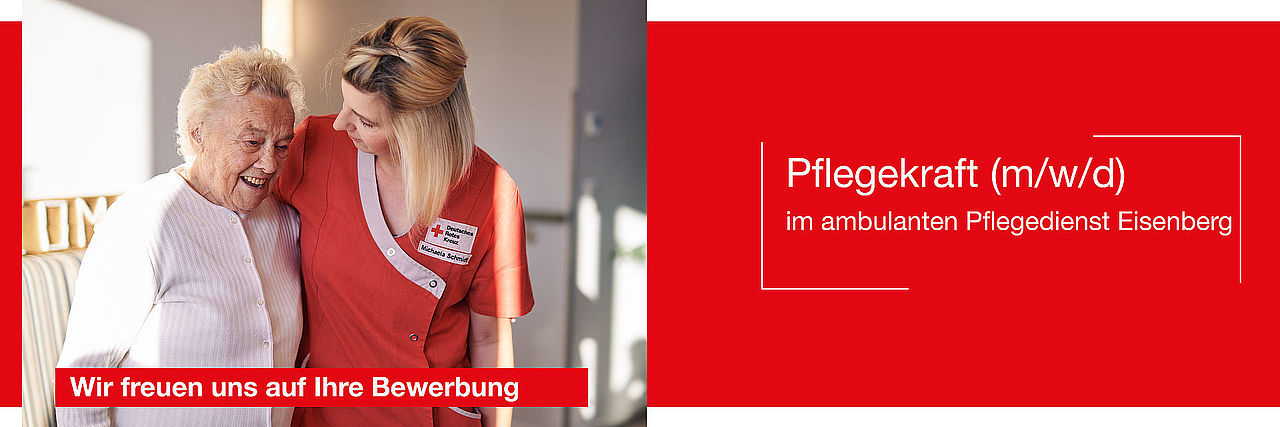 Als großer sozialer Dienstleister betreut der DRK-Kreisverband Jena-Eisenberg-Stadtroda e.V. mit drei ambulanten Pflegediensten pflege- und hilfsbedürftige Menschen in Jena und im Saale-Holzland-Kreis und kümmert sich zuverlässig um das Wohlergehen und die Gesundheit seiner anvertrauten Klienten. Für unseren Hauspflegedienst in Eisenberg suchen wir schnellstmöglich eine