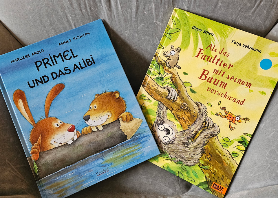Hier haben Isabella Graf und Nadine Ziller Geschichten vorgelesen: Die „Primel und das Alibi“ und „Als das Faultier mit seinem Baum verschwand“.