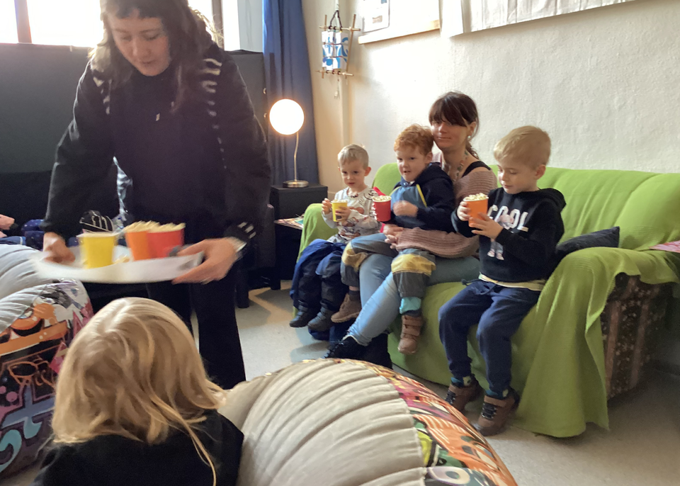 Im gemütlich gestalteten Laden machten es sich die Kinder in Sitzkissen bequem und durften während des Zuhörens sogar Popcorn knabbern.