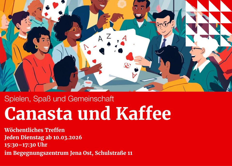 Wöchentliches Treffen Jeden Dienstag ab 10.03.2026 15:30–17:30 Uhr im Begegnungszentrum Jena Ost, Schulstraße 11