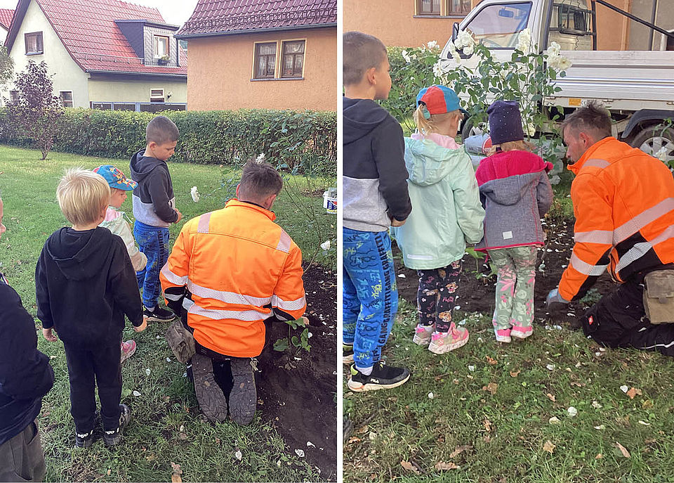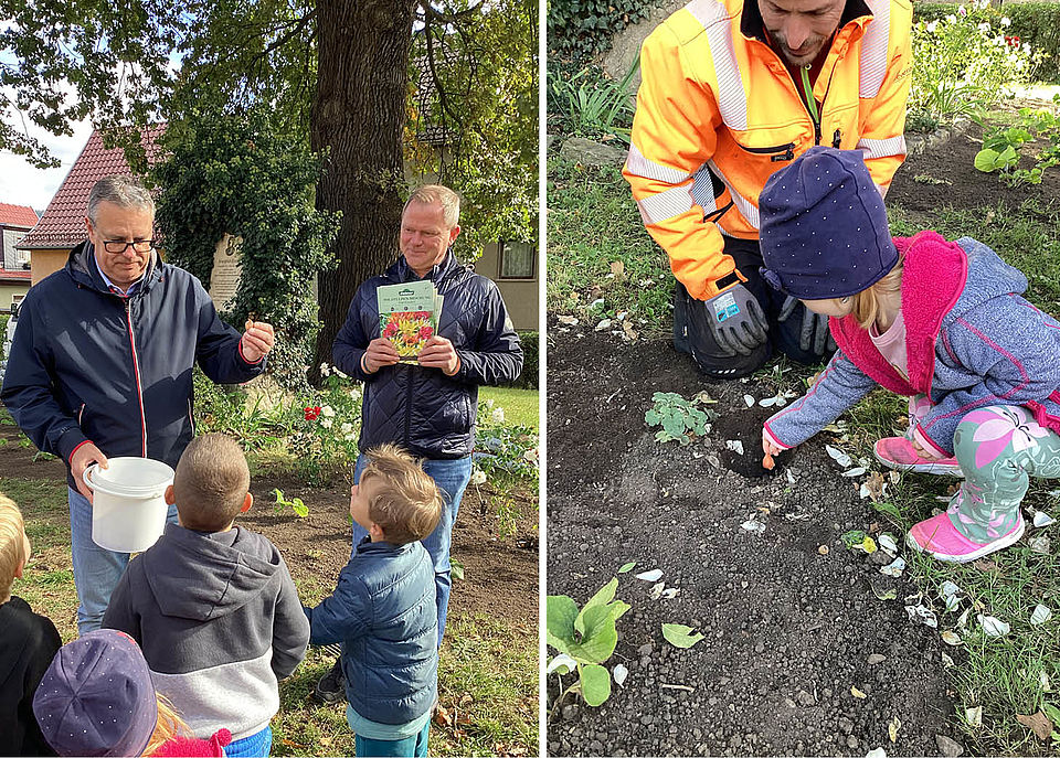 Unsere Kinder waren mit dem Bürgermeister unserer Stadt unterwegs, um am Friedrich-Ebert-Denkmal Tulpenzwiebeln zu stecken.