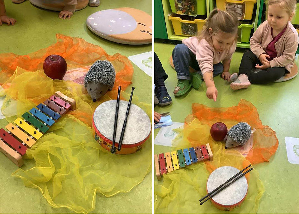 Ganz viel Freude haben unsere Kleinsten jetzt im Herbst mit der Klanggeschichte "Der hungrige Igel". Eine große Freude auch für uns Fachkräfte. Wir dürfen erleben, wie aufmerksam und konzentriert unsere Kinder musizieren, zuhören und sprechen. Und der Igel ist am Ende auch noch satt geworden.