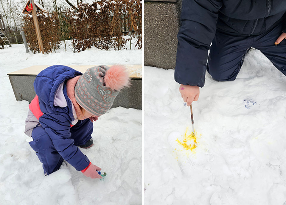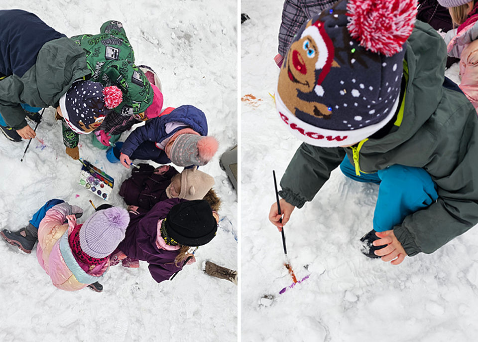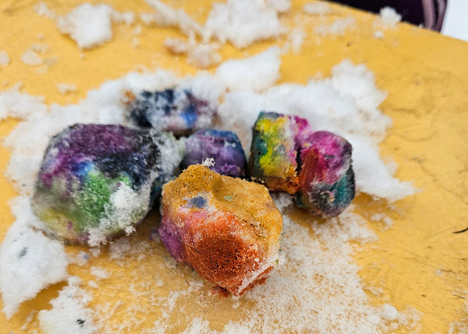 Farben wurden gemischt und mit Experimentiergeist auf die kalte Masse aufgetragen. Dabei entstanden ganz besondere Kunstwerke.