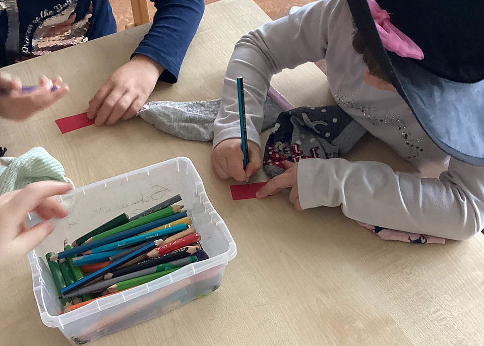 Im Anschluss nähten und bastelten sich unsere Vorschulkinder ihre eigene Sockenpuppe.