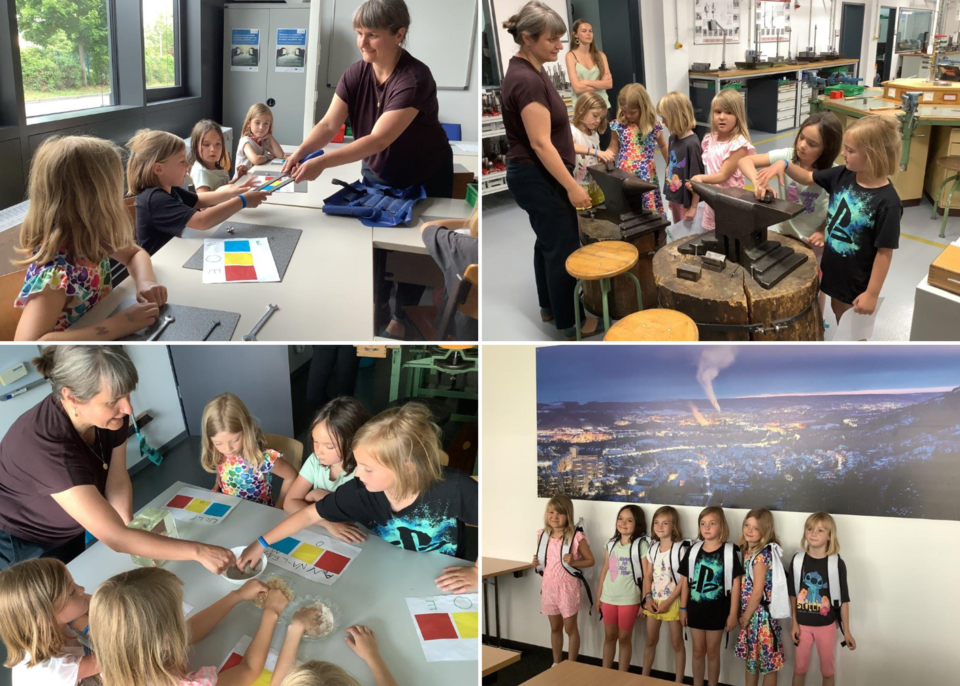 Die Kinder erhielten Einblick in die (Aus-) Bildungsbereiche Optik, Elektronik und Metall. Es gab viel Spannendes zu entdecken und auszuprobieren. So haben sie erlebt, wie Linsen Lichtstrahlen brechen, sie haben erfahren, woraus Glas hergestellt wird, konnten sich am 3D-Drucker ein eigenes Namensschild herstellen und bastelten sich aus Schrauben kleines Männlein zusammen. Sechs fröhliche und zufriedene Kinder hatten nach ihrer Rückkehr in der Sternschnuppe ganz viel zu berichten.